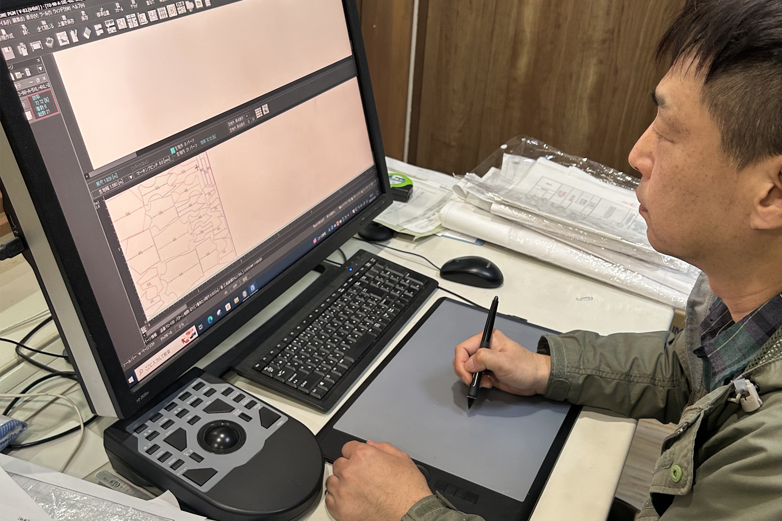 当社では、信頼関係を築いてきた協力工場に設置されたCAMシステム自動裁断機を活用し、高精度な裁断を行っています。 CADで型入れしたデータを忠実に再現し、正確でムラのない裁断を可能にします。手裁断では難しい円形や複雑なラインも、安定した品質で切り出すことができます。 裁断はすべてデータ管理のため、紙の型紙は不要です。型が劣化することなく、何度裁断しても同じ精度を保てることは、製品の品質を支える重要な要素です。当社は縫製工場として、CADパターンを活用した服づくりを行っています。 CADとは、コンピュータ上で型紙(パターン)を作成・管理する仕組みで、寸法や形を正確に再現できるのが特長です。 はじめてアパレル製作に挑戦される方や、パターンに不安のある方でも、職人が内容を確認しながら進行するため安心です。 企画段階から縫製まで、一貫したものづくりを大切にしています。
