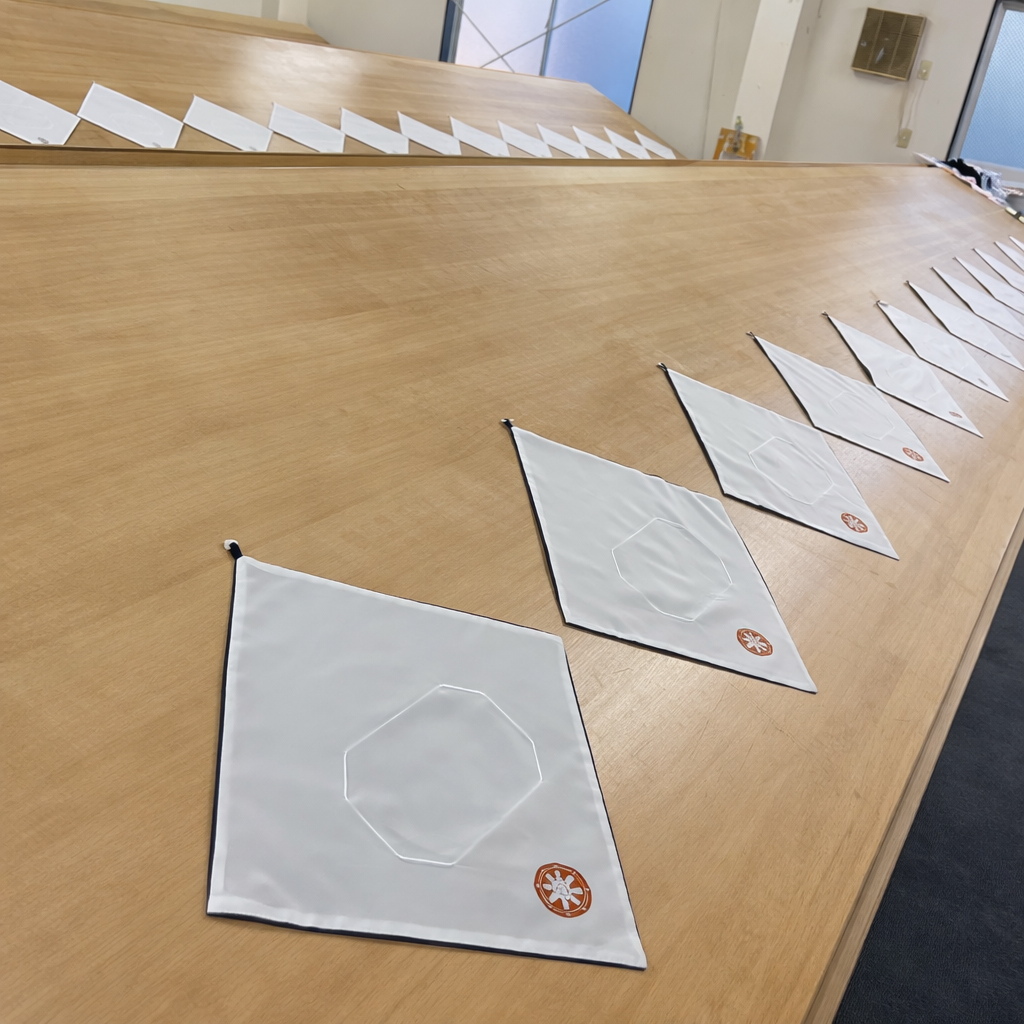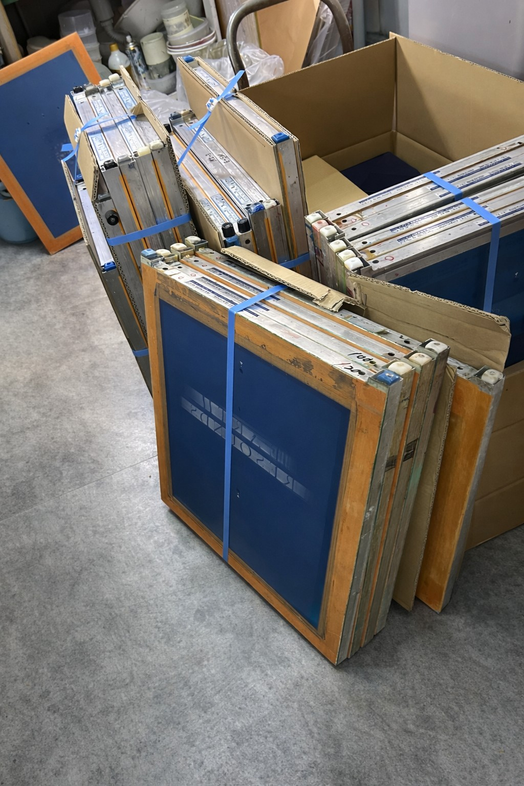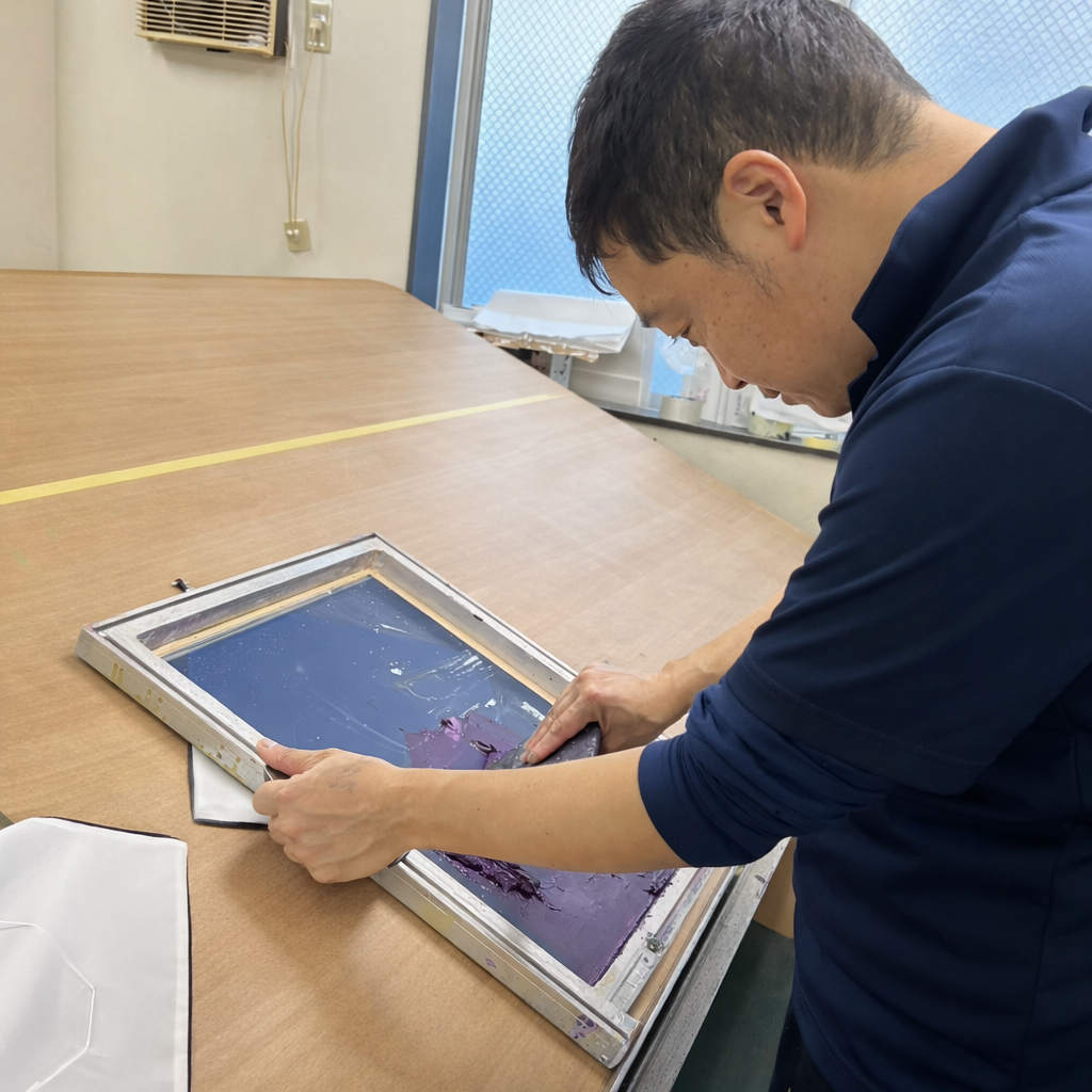 シルクプリントは、ただインクを刷る作業ではありません。 版の状態、インクの粘度、スキージーにかける力と角度。 その一つひとつを、職人が感覚で見極めながら仕上げていきます。 この現場では、ラフスケッチや写真データといった 「まだ形になりきっていないアイデア」からでも、 最終製品を見据えたプリントを行います。 最大80cm角まで対応できるサイズ感も、 表現の自由度を大きく広げます。 私たちは縫製工場として、 プリントを“装飾”ではなく“服づくりの工程”として考えています。 完成品へのプリントはもちろん、 縫製前のパーツ生地に刷ることで、 袖・裾・背中など、服のどの位置にも狙い通りの表現が可能です。 版は一定期間保管され、リピートにも対応。一度きりで終わらない、 ブランドづくりを支えるためのプリント技術が、 ここにはあります。