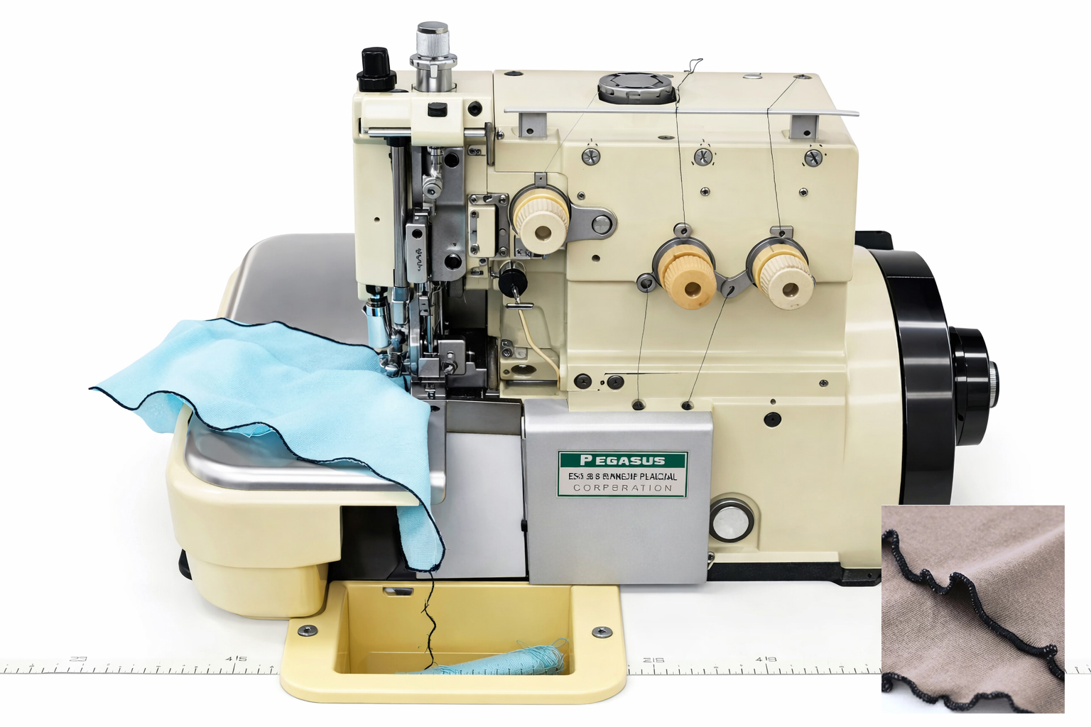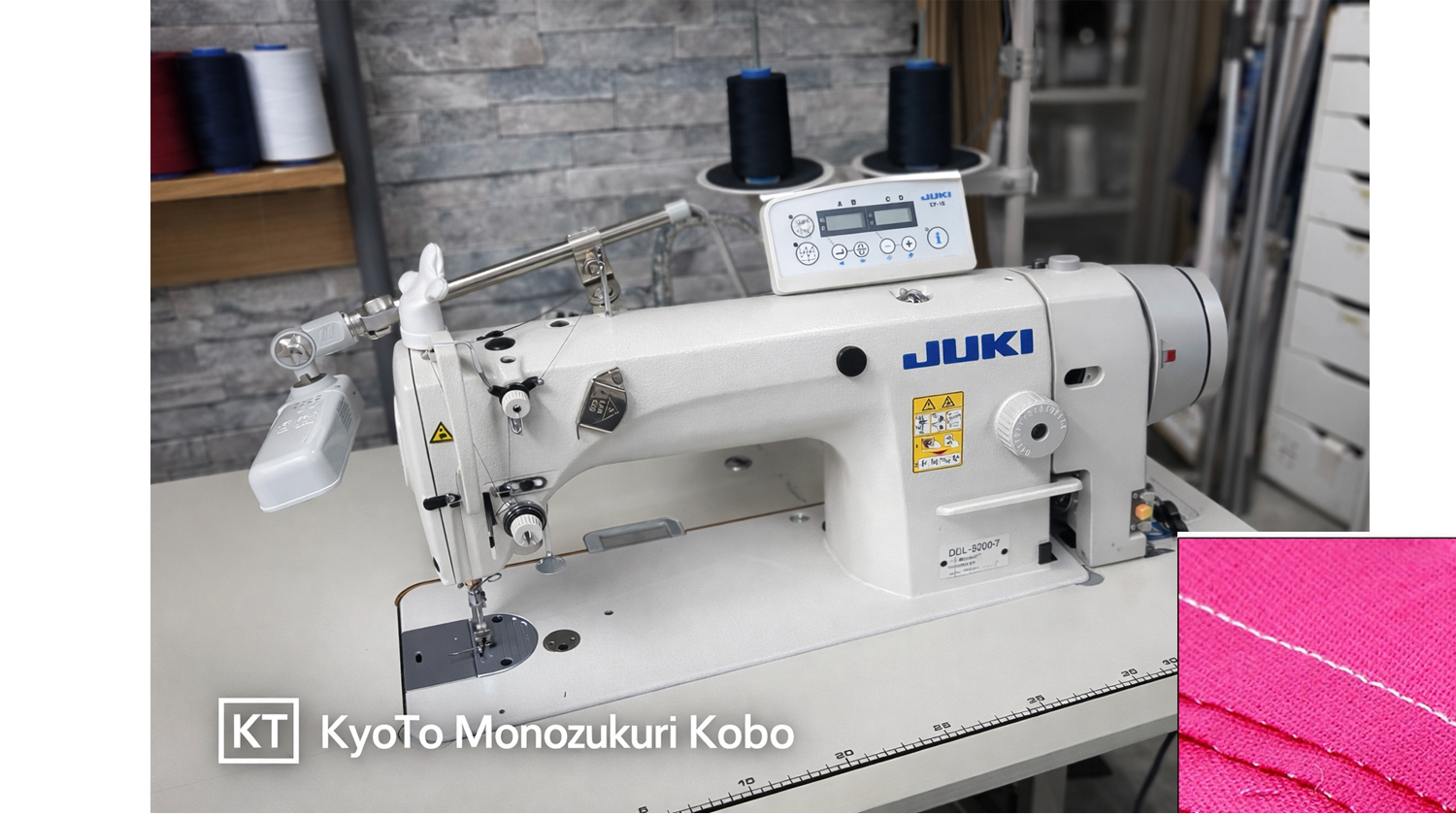 上糸と下糸の上下の糸で縫う直線のみのミシン。 アタッチメント、でコバステッチ、三ツ巻縫い、紐作りパイピング始末、ギャザー入れ等用途は多い。