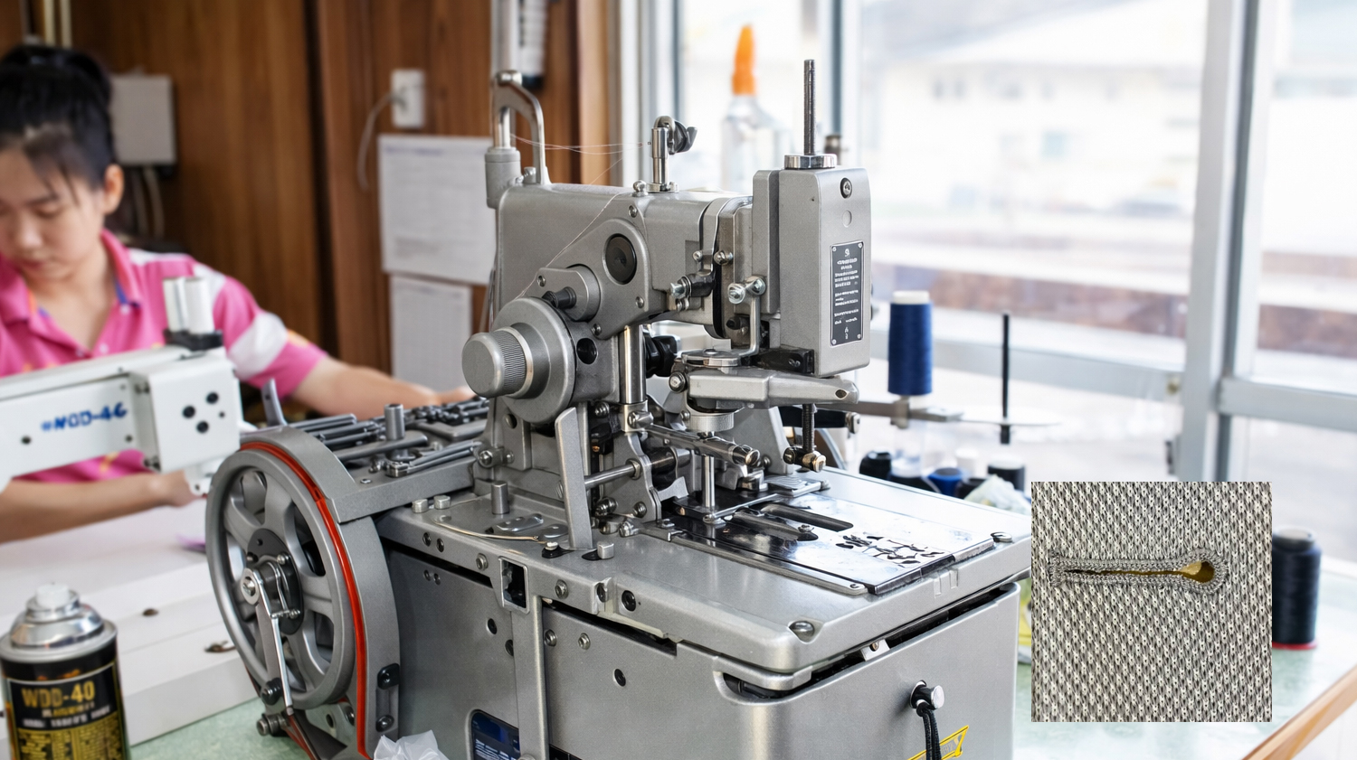 鳩目ホールの場合、閂止め(かどめ)ミシンも必要になります。ん